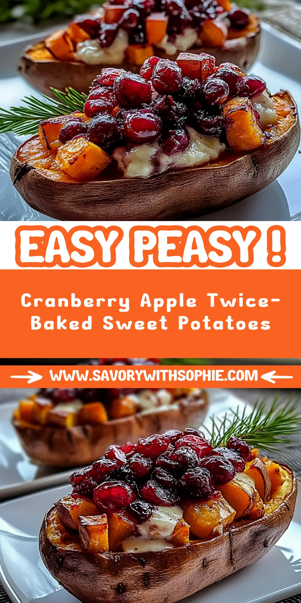 In summary, Cranberry Apple Twice-Baked Sweet Potatoes offer a delightful blend of flavors and textures that can make any meal extraordinary. By baking sweet potatoes first, and then filling them with a sweet and spiced apple-cranberry mixture, you create a dish that is both comforting and gourmet. Perfect for holidays or weeknight dinners, this recipe is sure to please your family and friends. Enjoy experimenting with variations to make this dish truly your own!