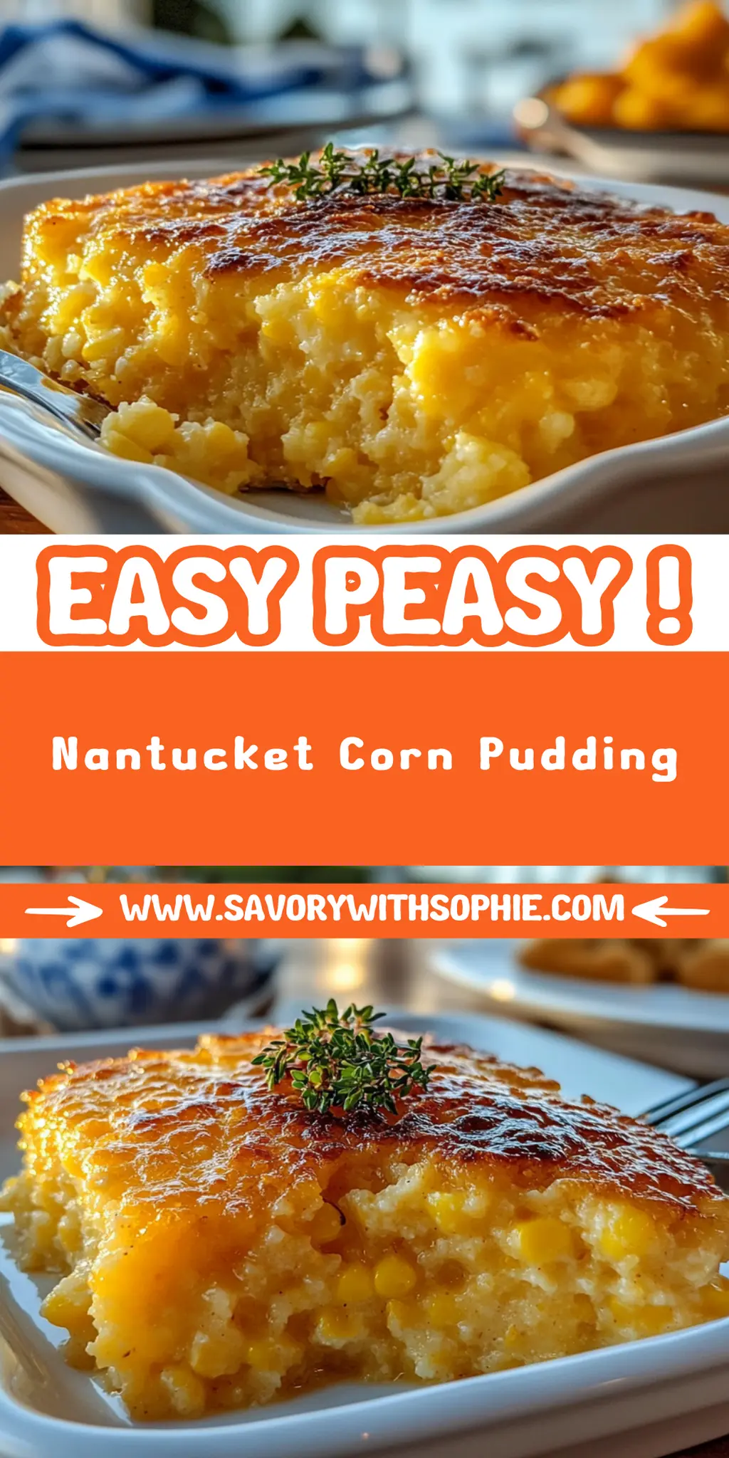 In summary, Nantucket Corn Pudding is a versatile and delicious dish that’s perfect for any gathering. With its smooth texture and comforting flavors, it appeals to both families and guests alike. Don’t hesitate to customize your version with various ingredients to align with your taste. Whether you serve it at Thanksgiving or on a casual Sunday dinner, the Nantucket Corn Pudding will undoubtedly become a cherished favorite in your home. Enjoy it with family, friends, and plenty of laughter!