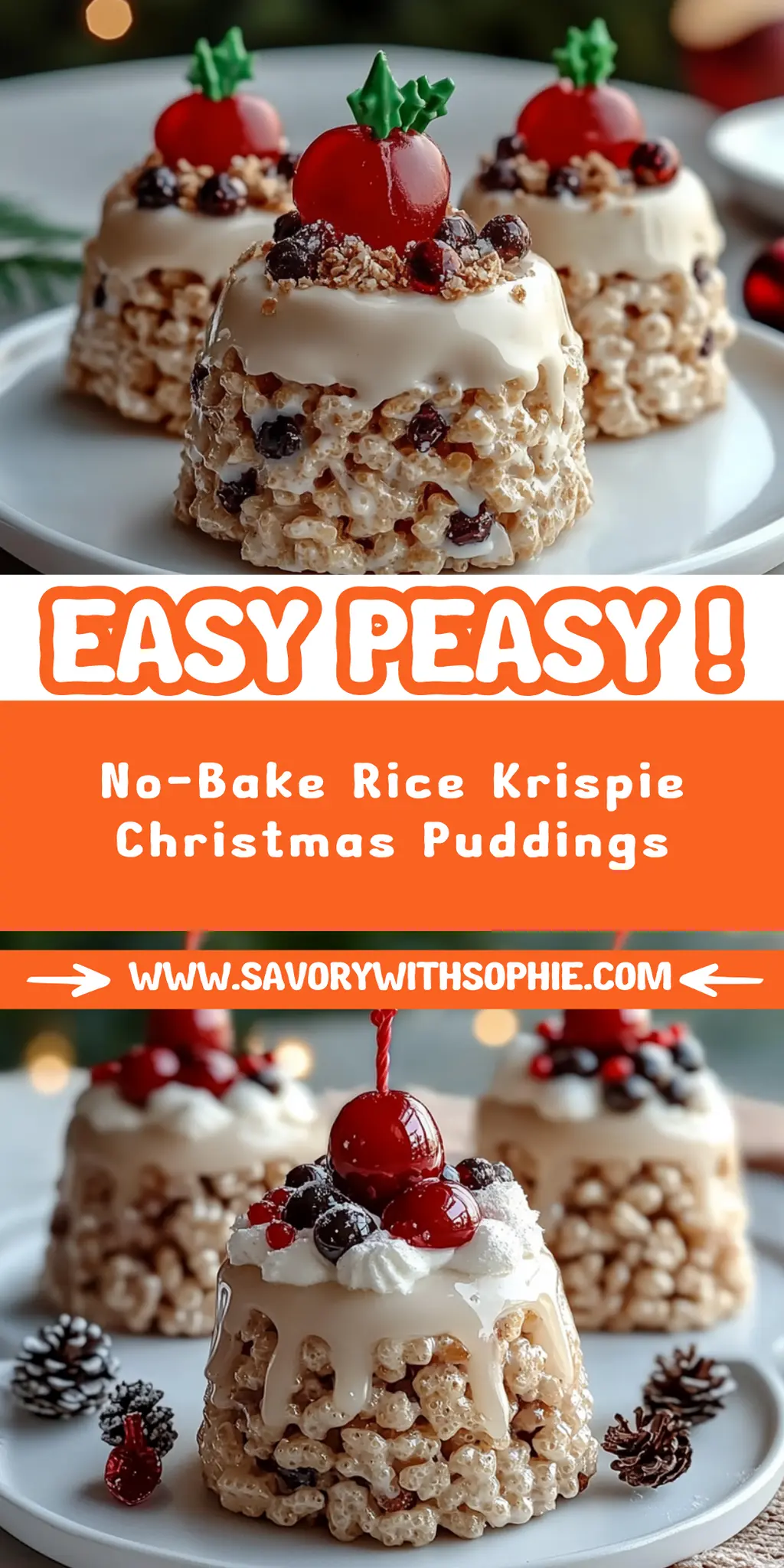 Whether you’re masterminding an Instagram-worthy dessert display or just need a quick sweet fix for yourself, these No-Bake Rice Krispie Christmas Puddings are a delicious way to spread holiday cheer! Can’t wait to hear about how yours turn out!